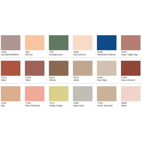 Dış cephe boyalarında geçmiş dönemlerde klasik renkler kullanılıyor olsa da günümüzde oldukça canlı renkler de tercih edilmektedir. Permolit dış cephe boya kartelası incelendiği vakit bunu çok daha net bir şekilde görmek mümkün olacaktır. Bu renkleri inceleyerek apartmanınız için iş yeriniz için en uygun olduğunu düşündüğünüz rengi tercih edebilirsiniz.
